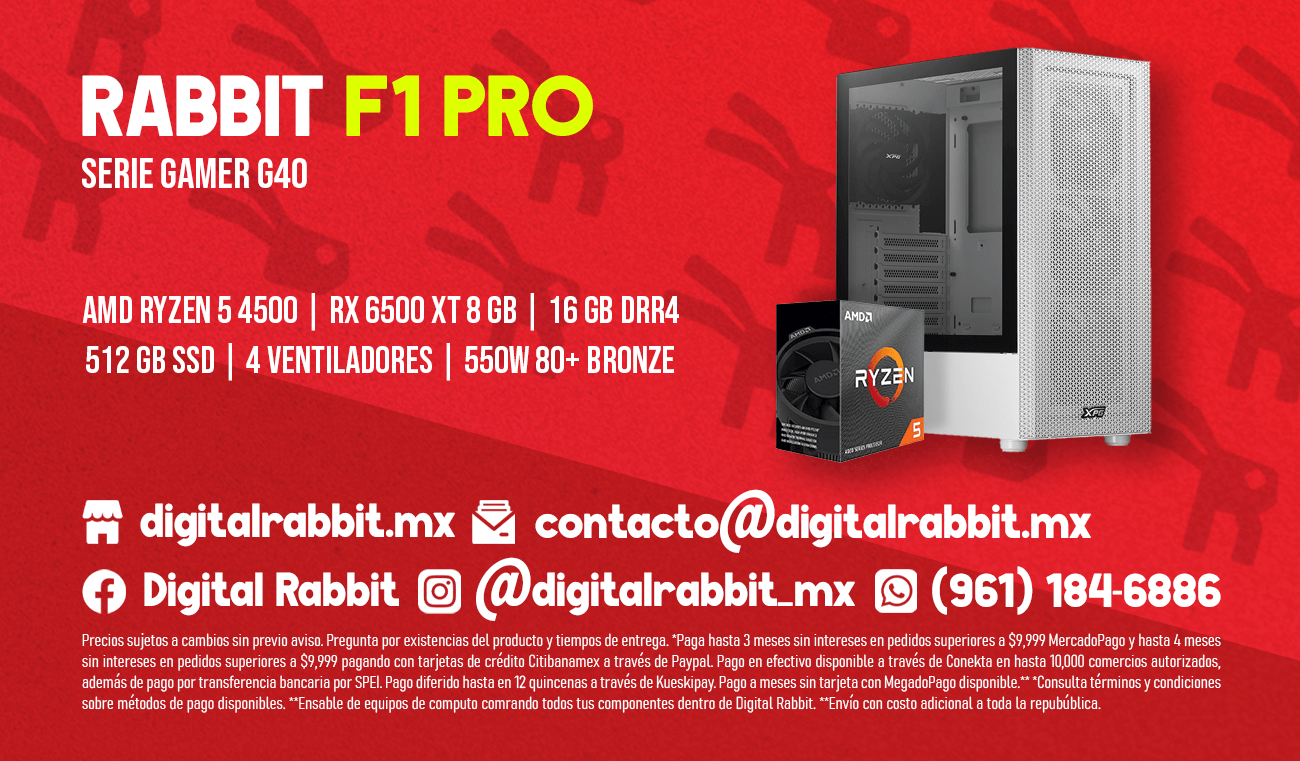 La RABBIT F1 PRO es una computadora diseñada especialmente para los gamers más exigentes y creadores de contenido que buscan una máquina con un rendimiento sobresaliente sin comprometer la eficiencia y la estética. Parte de la Serie Gamer G40, esta computadora está optimizada para ofrecer una experiencia de gaming fluida y de alta calidad, ideal para quienes buscan disfrutar de sus juegos favoritos con configuraciones gráficas altas o ultra, además de contar con una máquina versátil para tareas de productividad y multitarea.