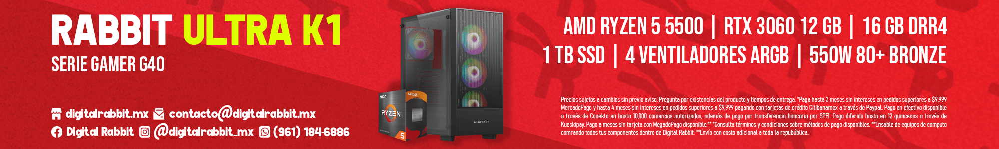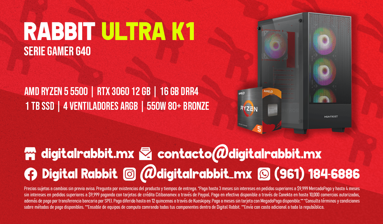 La RABBIT ULTRA K1 es mucho más que una simple computadora. Es una experiencia completa que te permitirá disfrutar de una calidad de juego excepcional, realizar tareas productivas de manera eficiente y llevar tu rendimiento al siguiente nivel. Ya sea que busques una máquina para juegos o para proyectos profesionales, la RABBIT ULTRA K1 es la opción definitiva para satisfacer tus necesidades de rendimiento sin comprometer el estilo.