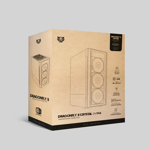 El Gabinete Gamer Dragonfly II Crystal GM745 es una solución de media torre diseñada para entusiastas del gaming y usuarios que buscan un equilibrio perfecto entre rendimiento y estética. Su estructura negra robusta admite placas madre ATX de tamaño máximo, ofreciendo amplio espacio para componentes de alta gama. El diseño incluye un panel lateral de cristal templado y un frente cristal que realza visualmente el interior del sistema.